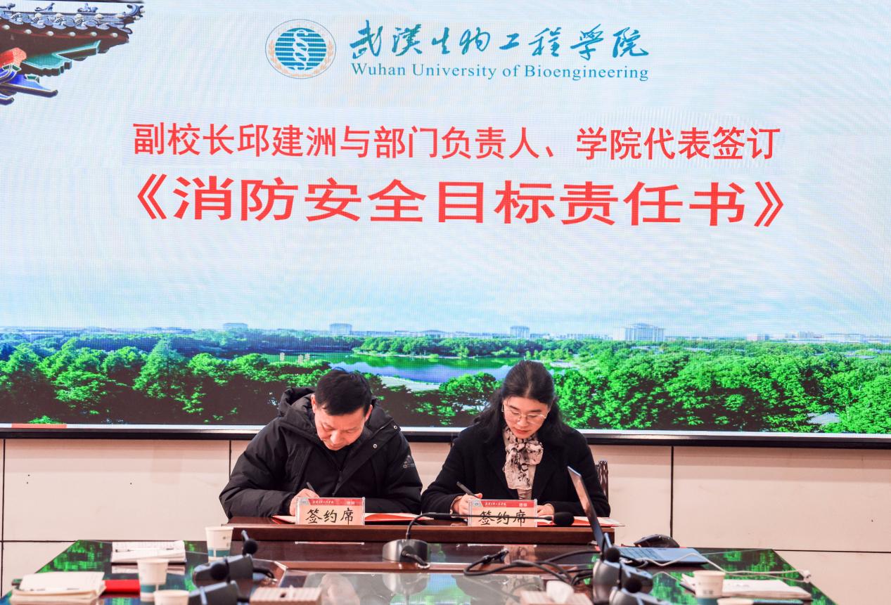 邱建洲代表学校与各部门、各学院党总支负责人签订了新一年的《消防安全目标责任书》。