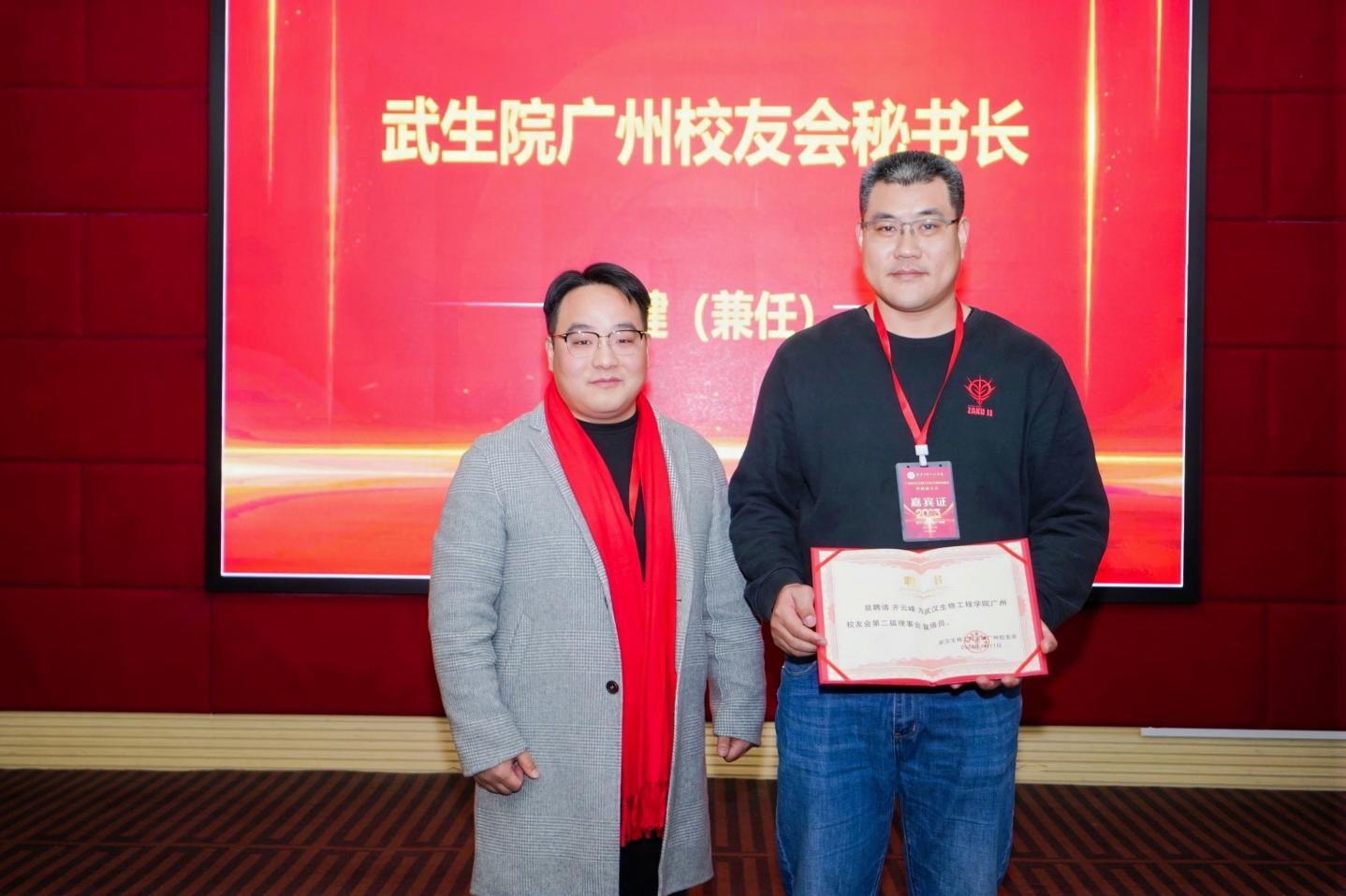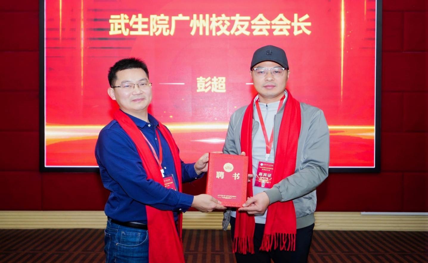 广州校友会新任会长彭超为理事颁发聘书